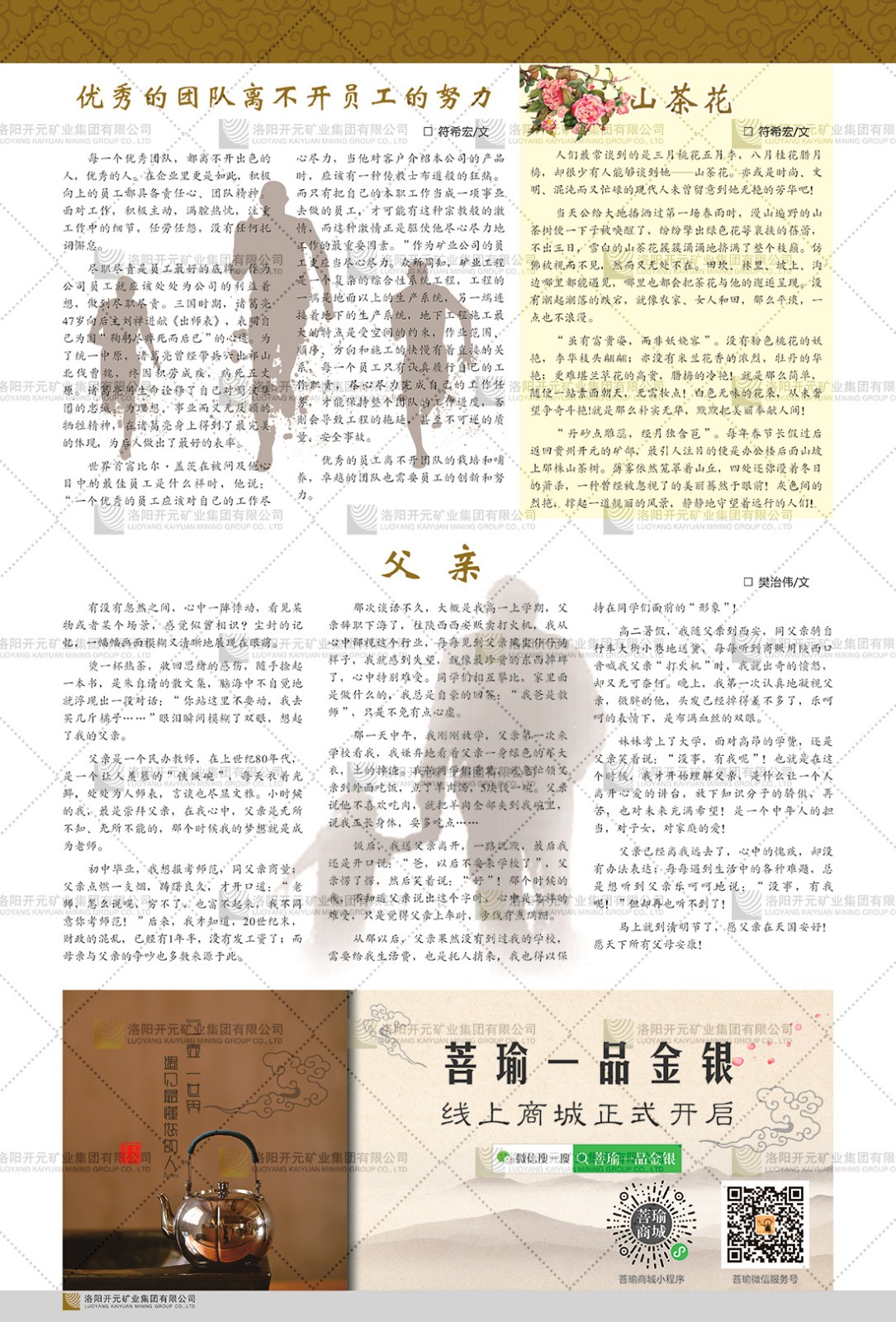 洛陽開元礦業(yè)集團有限公司簡介洛陽開元礦業(yè)集團有限公司,始成立于2006年,位于洛陽市開元大道269號。集團旗下共有五余家全資子公司,業(yè)務(wù)涉及有色金屬礦山開發(fā)、礦產(chǎn)品購銷與進出口貿(mào)易、房地產(chǎn)開發(fā)、文化藝術(shù)、企業(yè)管理與咨詢、資本投資等多個領(lǐng)域。民建河南省委委員、民建河南省委企業(yè)委副主任、民建洛陽市委委員、企業(yè)委主任、洛陽民建企業(yè)家協(xié)會會長許明月是公司創(chuàng)始人,現(xiàn)任洛陽開元礦業(yè)集團有限公司董事長。在礦業(yè)領(lǐng)域,洛陽開元礦業(yè)集團擁有多家實力雄厚的子公司:貴州開元礦業(yè)有限公司探、采礦權(quán)面積共11.33平方公里;興??h銅鑫礦業(yè)有限公司探礦權(quán)面積8.76平方公里,礦山資源潛力巨大;2021年,開元集團與盧氏中科礦業(yè)有限公司開展戰(zhàn)略合作。盧氏中科礦業(yè)有限公司專注于有色金屬的浮選、加工和銷售,擁有強大的技術(shù)支撐平臺,是集探、采、選、冶、研為一體的中大型綜合礦業(yè)企業(yè)。目前,盧氏中科王家河1000噸選礦廠已成功投產(chǎn),雙河金礦、柳關(guān)欒盧鉛鋅礦相繼順利開工,樓房銀礦與圪老灣鉛鋅礦的深部探礦重大突破,標志著礦山版圖取得重大進展,為開元集團后續(xù)發(fā)展奠定了堅實基礎(chǔ)。在文化傳媒領(lǐng)域,洛陽市明月美術(shù)館通過豐富多樣的藝術(shù)展覽、學術(shù)研討和公共教育活動,努力打造一個集展覽、交流、教育、研究為一體的綜合性藝術(shù)平臺。此外,在金融投資領(lǐng)域,開元集團旗下的北京明峰資本管理有限公司專注于投資具有高增長潛力的優(yōu)秀企業(yè),特別是高科技、新能源、環(huán)保等新興產(chǎn)業(yè),為客戶提供個性化的資產(chǎn)配置服務(wù)。在做好企業(yè)經(jīng)營的同時,開元集團始終不忘企業(yè)的社會責任和家國情懷,以突出的愛心公益事跡,開展了一系列公益慈善活動:“民建林”公益事業(yè)通過“思源基金”“幫幫公益”線上公益平臺,與眾多愛心人士籌措資金20余萬元;資助541名貧困大學生共計270余萬元,推進“數(shù)字助力——河南AI人才培養(yǎng)”;捐款10萬元,馳援京津冀、黑龍江洪水地質(zhì)災(zāi)害……公司于2017年底被洛陽市慈善總會評為“洛陽慈善風云榜——十大愛心集體”。洛陽開元礦業(yè)集團有限公司秉承持續(xù)發(fā)展理念,憑借多年來良好的企業(yè)信譽與經(jīng)營業(yè)績,與全國多家企業(yè)建立了良好合作關(guān)系,受到社會各界的一致好評,多次榮獲“納稅標兵”“先進企業(yè)”“招商引資模范企業(yè)”等榮譽稱號。回望來時路,開元人勠力同心,以“闖”的精神和“創(chuàng)”的勁頭,一路披荊斬棘,踏過千山萬水;展望新未來,開元人凝心聚力,不執(zhí)于“舊”,無畏于“新”,秉承“勇于跨越,追求卓越”的企業(yè)精神,乘著國家高質(zhì)量發(fā)展新征程的東風,跨過高山,越過大海,向著集團多元化、國際化的目標,逐夢遠航,跨越前行!